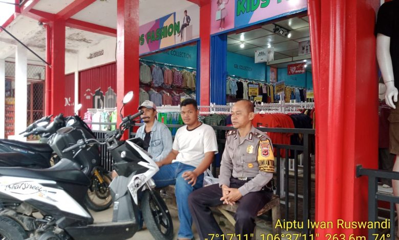 Sukabumi,The8news.com | Bhabinkamtibmas Desa Bojong genteng Polsek Jampangkulon Polres Sukabumi, Aiptu Iwan Ruswandi melakukan silaturahmi atau Door to Door Syistem ke pertokoan yang ada di wilayah Desa Bojong genteng Kecamatan Jampangkulon, Kabupaten Sukabumi pada hari Kamis, (30/3/2023) Siang.