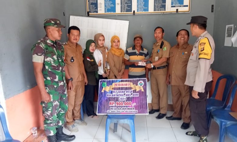 Penyaluran BLT-DD dilakukan di kantor Desa dan diserahkan langsung oleh Kepala Desa Gajah Muda, disaksikan pihak kecamatan, Babat Supat,Babinsa, Bhabinkamtibmas ,