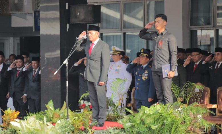 Terpantau pelaksanaan upacara yang digelar bersama seluruh instansi yang tergabung dalam Forum Koordinasi Pimpinan Daerah (Forkopimda) kota Palembang terlihat hikmat, dan di pimpin lansung oleh Pj Sekda Palembang, Ir. H. Gunawan, M.TP selaku Inspektur upacara.