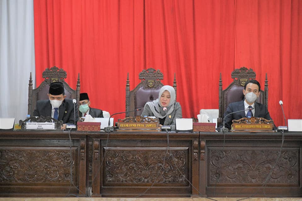 Rapat Paripurna dipimpin Wakil Ketua DPRD Provinsi Sumsel, Kartika Sandra Desi SH, didampingi oleh Wakil Ketua DPRD Provinsi Sumsel H Muchendi MSE, Gubernur Sumsel diwakili oleh Pelaksana Tugas (Plt) Asisten I Bidang Pemerintah dan Kesra Pemprov Sumsel, Drs H Edward Candra MH, serta dihadiri oleh jajaran OPD dan tamu undangan lain secara langsung maupun virtual.