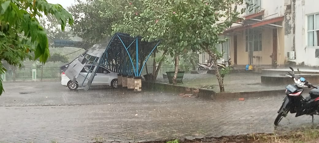 Tak pelak akibat ekstrimnya cuaca tersebut mengakibatkan robohnya Atap Parkiran Dinas Pendidikan Dan Kebudayaan Kabupaten Muara Enim dan menimpa Salah Satu Mobil Dinas milik salah satu PNS dinas Pendidikan yang sedang terparkir di bawah atap tersebut dan mengalami Rusak ringan.