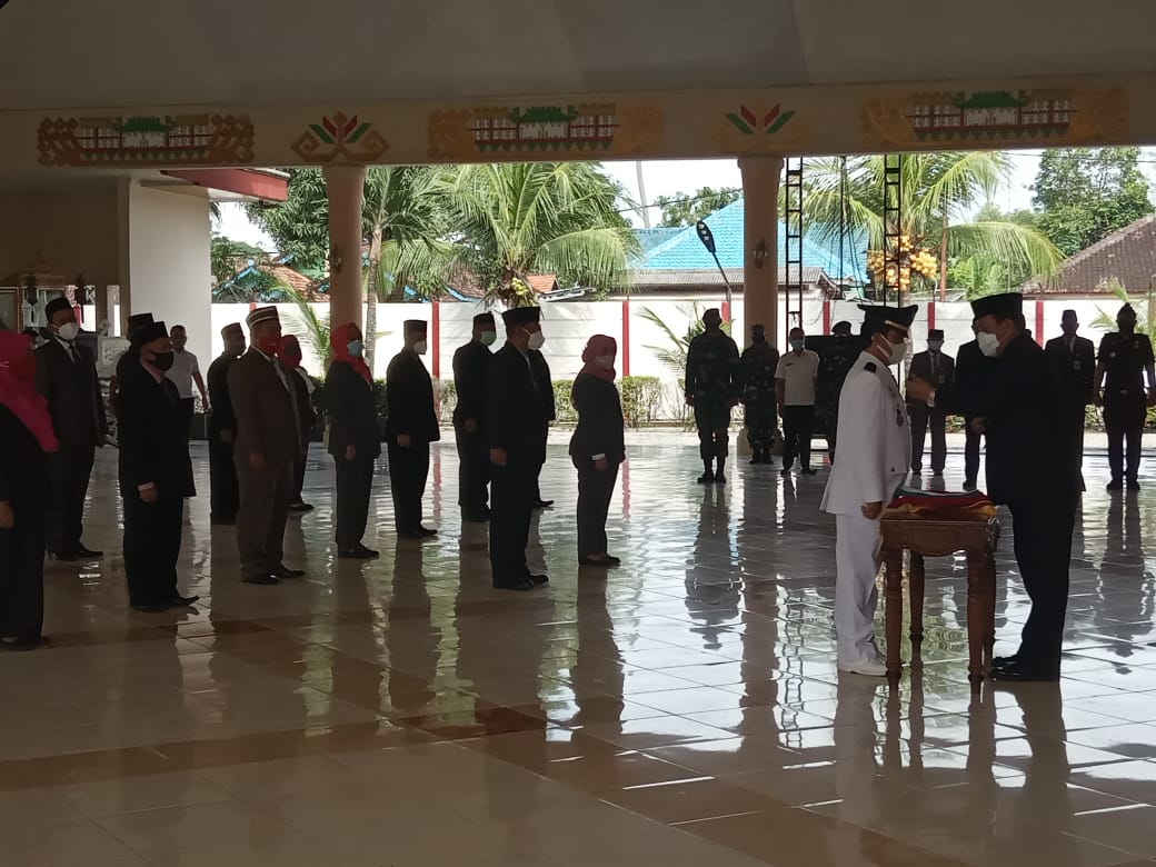 Dalam Upacara Pelantikan dan pengambilan sumpah jabatan Pejabat administrator dan Pejabat pengawas kali ini tetap menerapkan Protokol Kesehatan,memakai masker dan menjaga jarak serta para pejabat yang baru dilantik dipersilakan untuk mengambil SK masing-masing yang telah di persiapkan dimeja pelantikan dengan cara satu persatu.