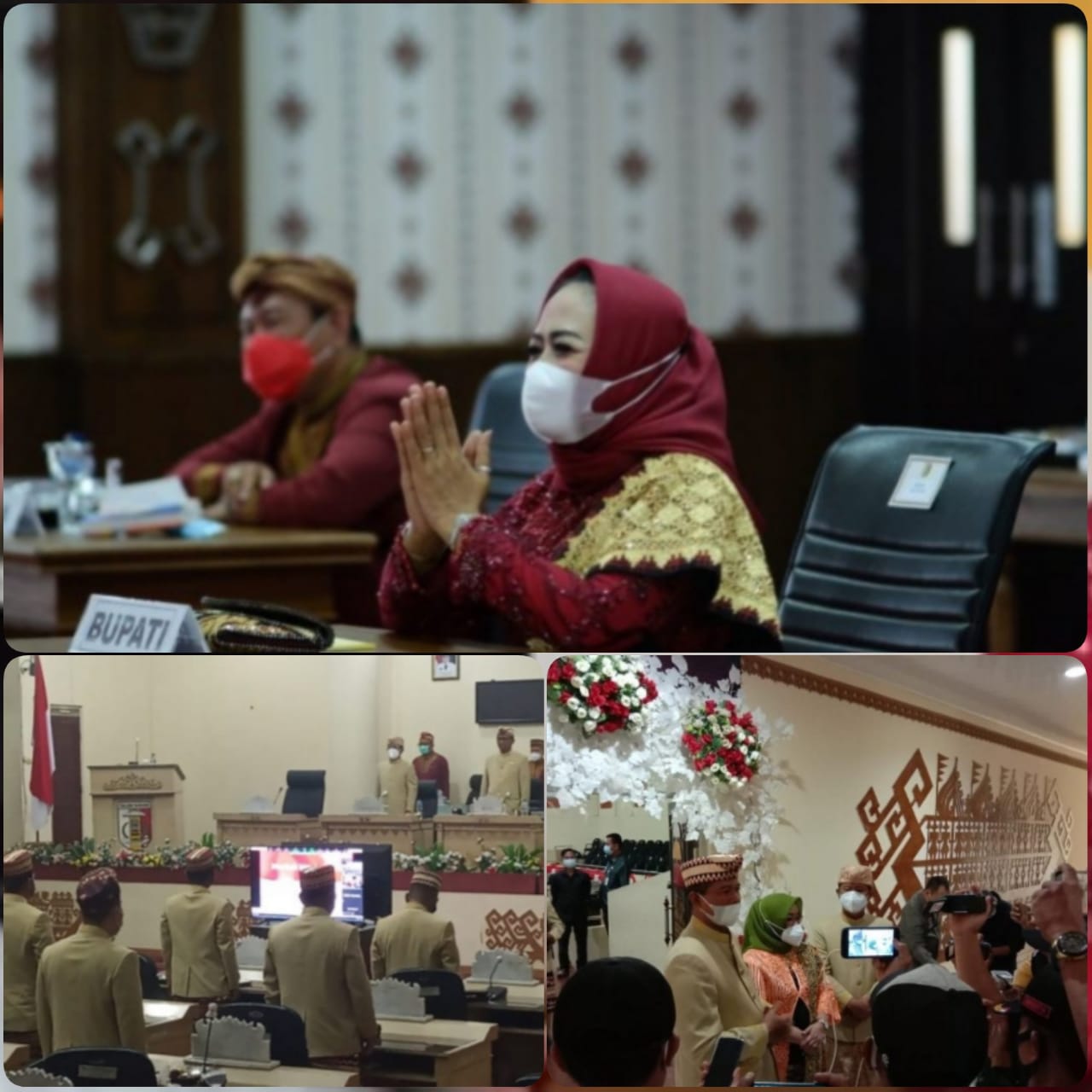 Tulang Bawang, The8news.com – Dewan Perwakilan Rakyat Daerah (DPRD) Kabupaten Tulang Bawang menggelar rapat paripurna, Sabtu (20/3) di ruang rapat Gedung DPRD Tulang Bawang. Rapat paripurna memperingati HUT ke-24 Kabupaten Tulang Bawang sekaligus dan HUT ke-57 Provinsi Lampung bertema “Bersama bergerak melayani warga satukan tekad mencegah penyebaran virus Corona dengan tetap mematuhi protokol kesehatan”.