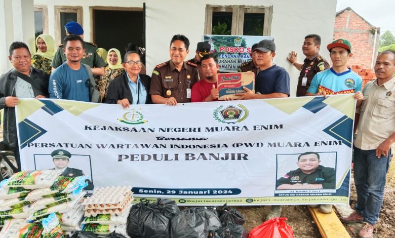 MUARA ENIM, The8news.com – Kejaksaan Negeri (Kejari) Kabupaten Muara Enim bersama Persatuan Wartawan Indonesia (PWI) Muara Enim menggelar bakti sosial bantuan sembako untuk korban banjir di kampung 8 Kelurahan Muara Enim, Kota Muara Enim, Senin (29/1/2024).