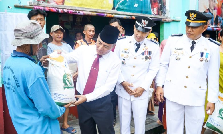 Pantauan di lokasi, tampak Pj Bupati Apriyadi Mahmud memantau langsung proses penyaluran penerima bantuan pangan di Kelurahan Balai Agung.