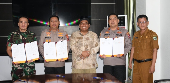Bupati PadangPariaman menandatangani Naskah Perjanjian Hibah dengan KAPOLRES PadangPariaman, KAPOLRES Kota Pariaman dan DANDIM 0308