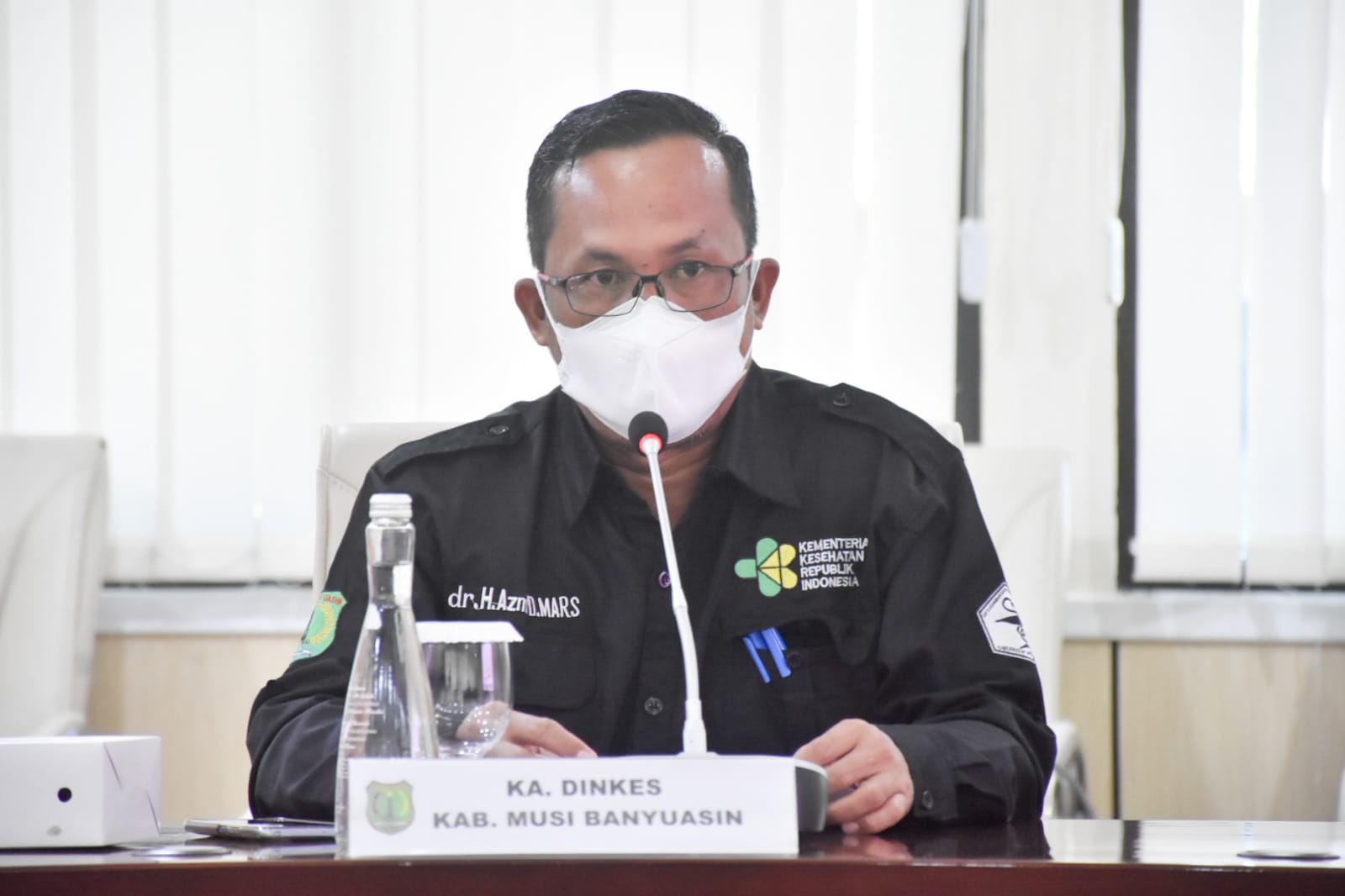 Kemudian dr Azmi memaparkan kondisi terkini perkembangan COVID-19 dan upaya yang akan dilakukan di kabupaten Muba peta zonasi resiko bahwa saat ini status Kabupaten Muba telah menurun dari resiko tinggi ke sedang.