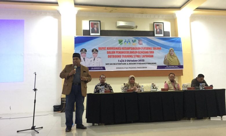 Padang Pariaman,- Dinas Sosial Pemberdayaan Perempuan dan Perlindungan Anak (Dinsos P3A) Kabupaten Padang Pariaman menggelar rapat koordinasi kesiapsiagaan personil Tagana dalam penanggulangan bencana dan outbond training study lapangan, bertempat di Aula Mifan Padang Panjang, Pada Senin (02/10/23).