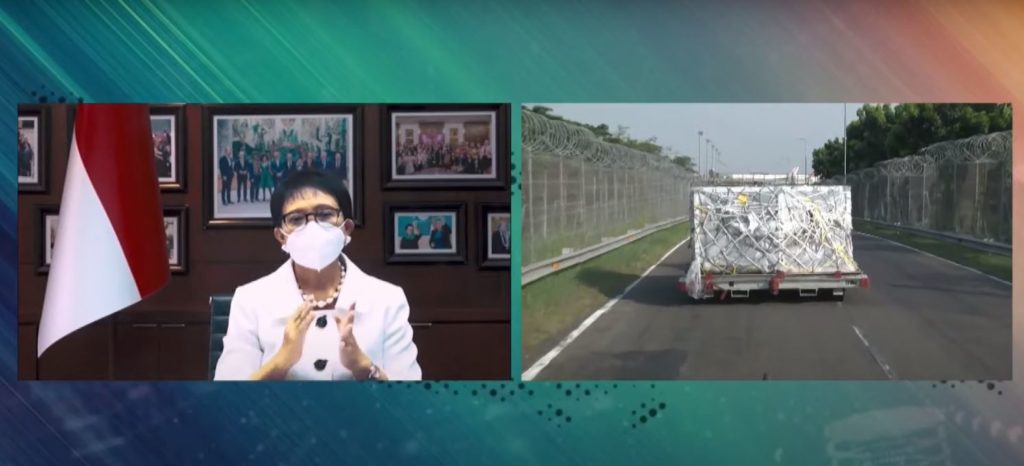 “Jika dihitung dari titik ketibaan, maka jumlah vaksin yang telah tiba di Indonesia adalah 225.536.190 dosis vaksin, baik dalam bentuk curah maupun dalam bentuk vaksin jadi,” ujar Menlu.