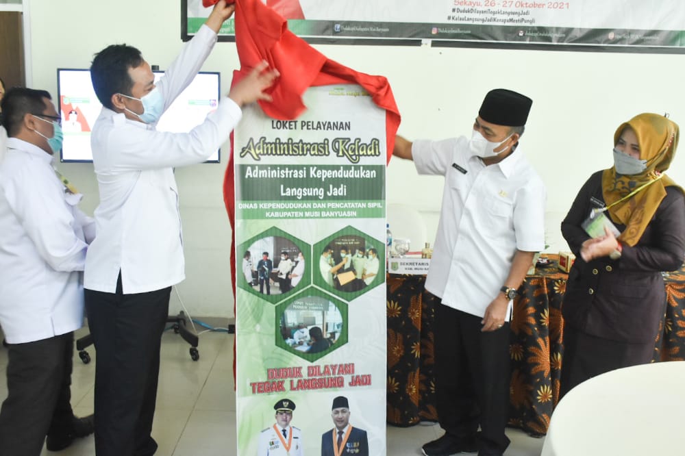 Pemkab Musi Banyuasin terus berinovasi untuk memberikan pelayanan prima bagi masyarakat. Kali ini, Plt Bupati Beni Hernedi SIP melalui Sekda Drs H Apriyadi MSi hadiri kick off loket pelayanan KELADI (administrasi kependudukan langsung jadi), Selasa (26/10/2021) , di Kantor Disdukcapil Muba.