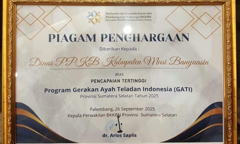“Penghargaan ini adalah hasil kerja sama seluruh jajaran, tenaga lini lapangan, serta dukungan masyarakat Muba. GATI bukan hanya program, tetapi gerakan moral untuk menghadirkan ayah yang aktif, peduli, dan teladan bagi anak-anaknya,” ujar Demoon Hardian Eka Suza usai menerima penghargaan.