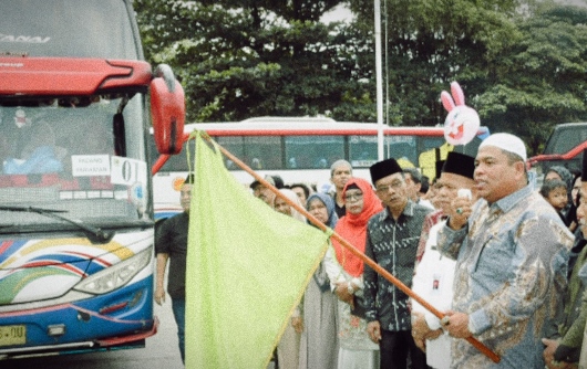 “Dengan mengucapkan bismillahirrahmanirrahim kita lepas keberangkatan calon jemaah haji kita untuk diinapkan semalam di asrama haji Sumatera Barat, Allahu Akbar,” seru Bupati Suhatri Bur.