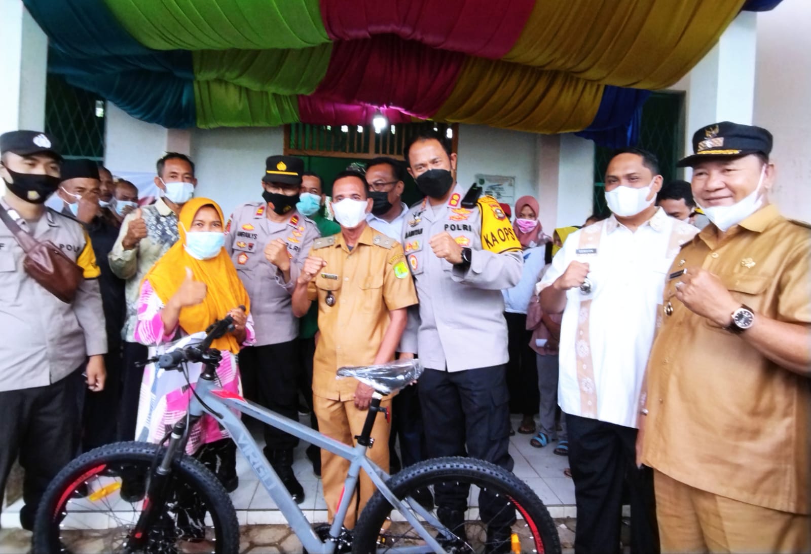 Lebih lanjut kapolres menyampaikan, kabar gembira kedua besok malam tanggal 30 tanggal 30 akan dilakukan pengundian pengundian hadiah kepada masyarakat melaksanakan vaksin dengan hadiah utama 6 unit sepeda motor,kemudian ada kompor gas ,dan lain nya.