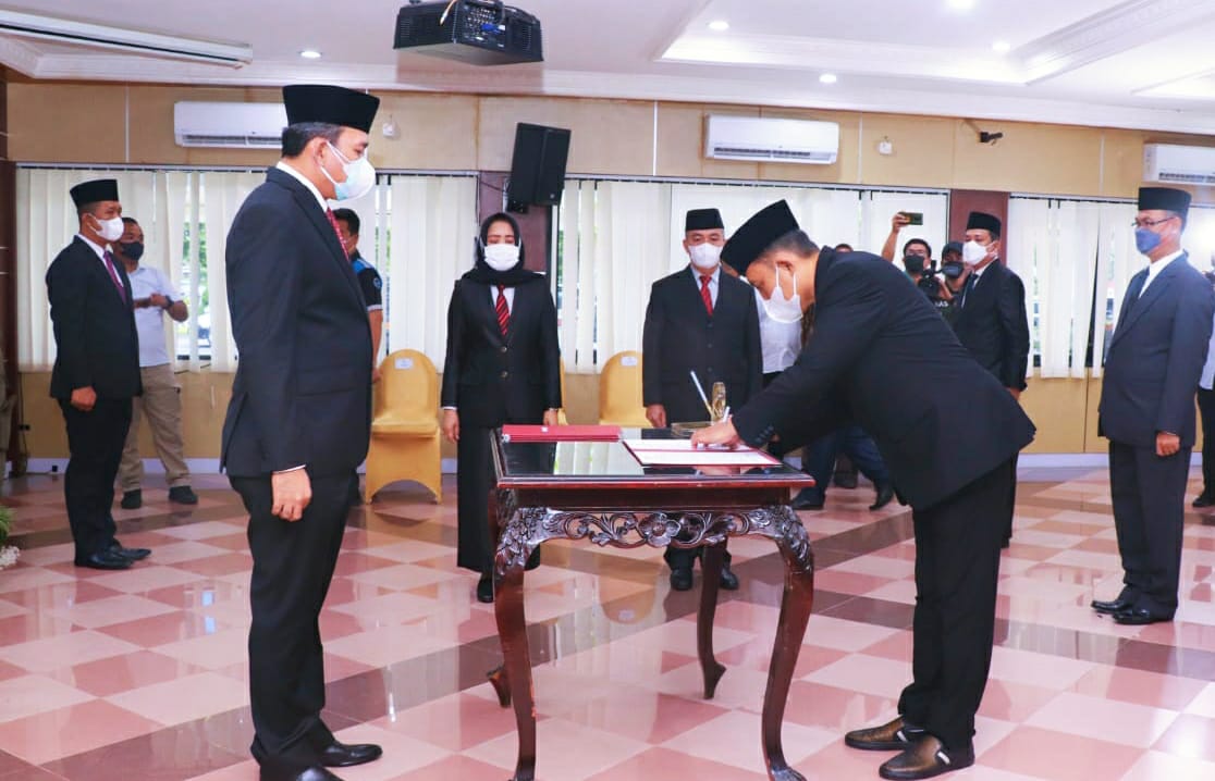 MUBA, the8news.com | Demi kelancaran proses roda pemerintahan dan penyegaran beberapa instansi Pemkab Muba, Plt Bupati Beni Hernedi SIP, Rabu (2/2/2022) melakukan Pelantikan dan Pengambilan Sumpah Pejabat di Lingkungan Pemerintah Kabupaten Musi Banyuasin di Auditorium Pemkab Muba.