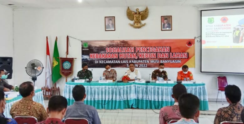 MUBA, the8news.com | Dalam rangka mengantisipasi terjadinya kebakaran hutan, kebun dan lahan (Karhutbunlah).Badan Penanggulangan Bencana Daerah (BPBD) Kabupaten Musi Banyuasin melakukan langkah-langkah terbaik dengan menyelenggarakan sosialisasi,memberikan imbauan dan edukasi kepada masyarakat pemilik lahan. Dalam pencegahan dan penanggulangan kebakaran hutan, di aula kanto Kecamatan Lais Kamis ( 10/3/ 2022)