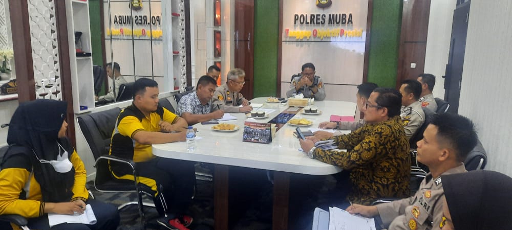 MUBA, the8news.com | Kapolres Musi Banyuasin AKBP Alamsyah Pelupessy SH S.ik M.si didampingi Wakapolres Muba Kompol Satria Dwi Dharma, SIK memimpin Rapat Tim Kerja Zona Integritas Menuju Wilayah Birokrasi Bersih Dan Melayani (WBBM) Polres Muba, Jumat, (03/05/22).
