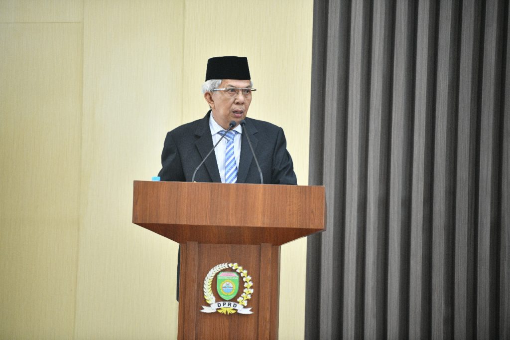 “Setelah musyawarah bersama perwakilan Fraksi yang membacakan pandangan Fraksi, pada prinsipnya kami menerima dan ingin melanjutkan pembahasan ini ke Komisi-komisi” Jelas Juru Bicara Fraksi-fraksi; Mgs. H. Syaiful Padli, ST, MM.
