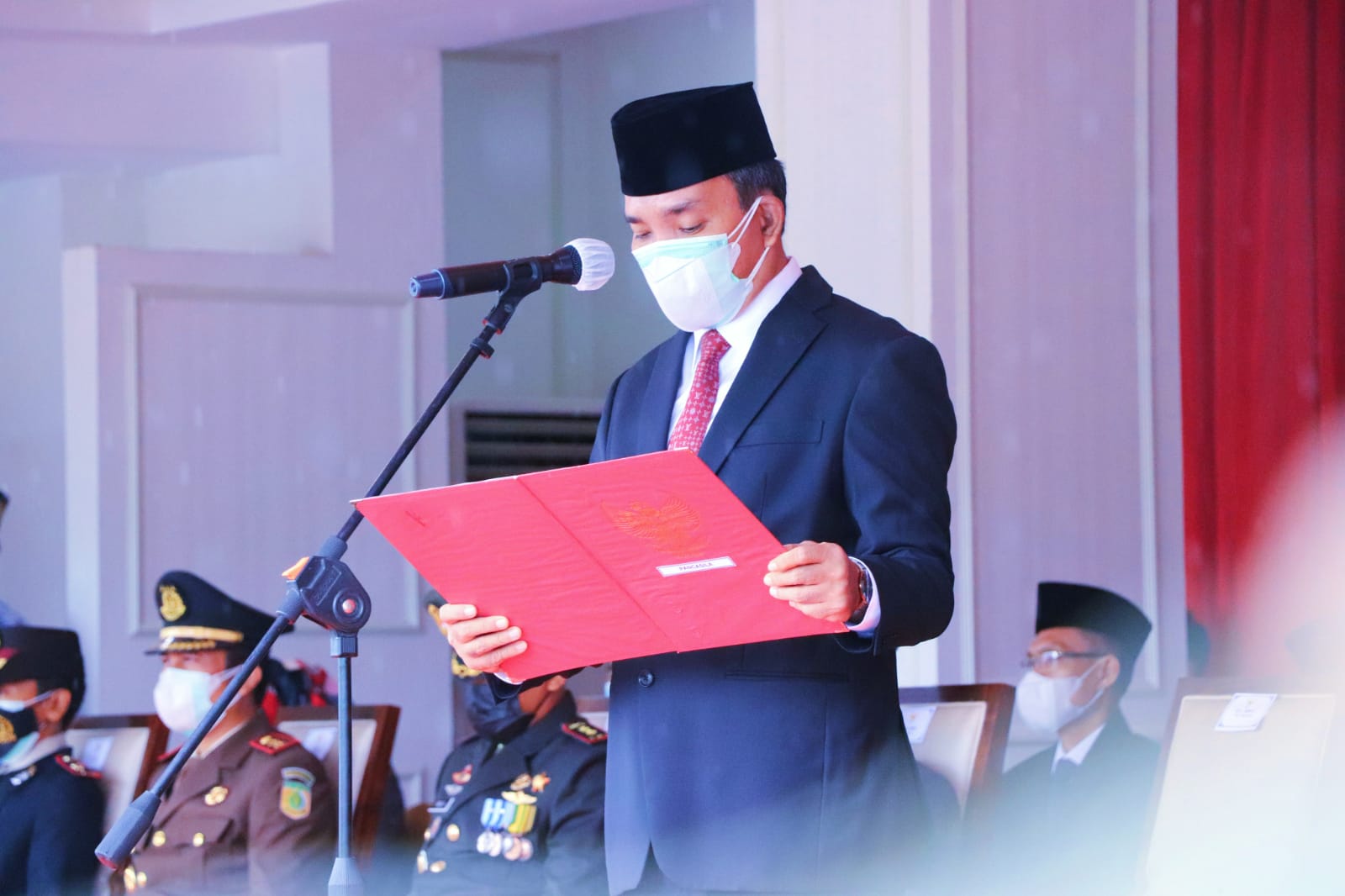 Pantauan di lokasi, dimana Plt Bupati Beni Hernedi SIP yang bertindak secara langsung sebagai inspektur Upacara tampak tetap bersemangat meski cuaca hujan lebat. Upacara diikuti unsur Forkopimda Kabupaten Muba, dengan peserta dari perwakilan unsur TNI, Polri, Pemkab Muba, serta sejumlah undangan lainnya yang dilaksanakan dengan prokes ketat.