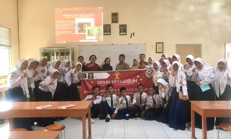 Palembang,The8news.com | Yayasan Lembaga Bantuan Hukum (LBH) Palembang dan BPHN Mengasuh menggelar sosialisasi dan penyuluhan hukum di SMP Negeri 5 Palembang, Selasa (21/3/2023) di .
