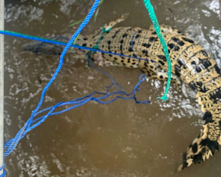 Hewan reptil berbahaya tersebut terjebak didalam perangkap ikan warga pada Senin (5/9/2022) lalu dan untuk sementara dimasukan warga didalam kurungan agar tidak menyerang warga sekitar.