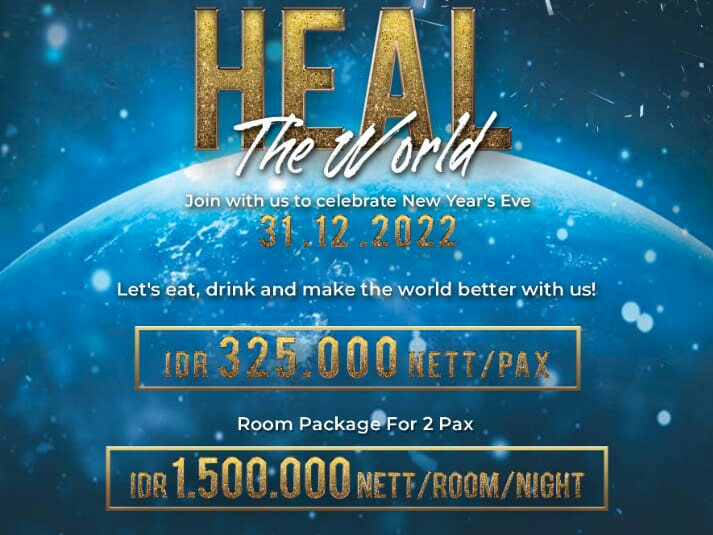 Paket tahun baru ini hanya dibanderol IDR 325.000 nett/pax dengan promo kamar di harga IDR 1.500.000 nett/room/night sudah termasuk breakfast dan dinner malam tahun baru untuk 2 pax