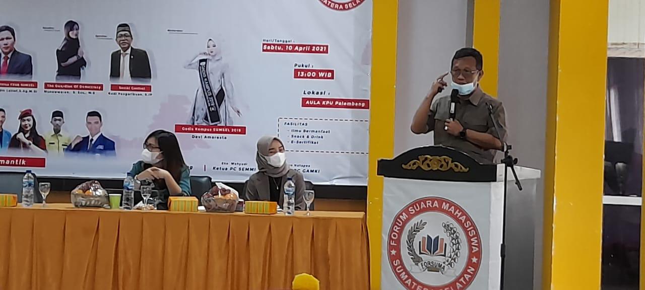 Pemantik Speaker M Amir Iskandar (Ketua EK LMND Palembang), I Wayan Sugita (Ketua PC KMHDI), Ilham Ali Akbar (Ketua PC PMII), Eko Wahyudi (Ketua PC SEMMI), Efran Hutapea (Ketua DPC GAMKI), Margaretha Ayu Pramadira (Sekjen PMKRI Cabang).