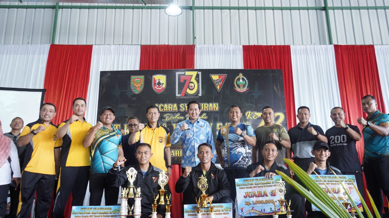 Dalam kesempatan tersebut pula Plt Bupati menyerahkan piala kepada para pemenang perlombaan dalam rangka memeriahkan HUT KAVAD dan YONKAV 5/DPC ke-73.
