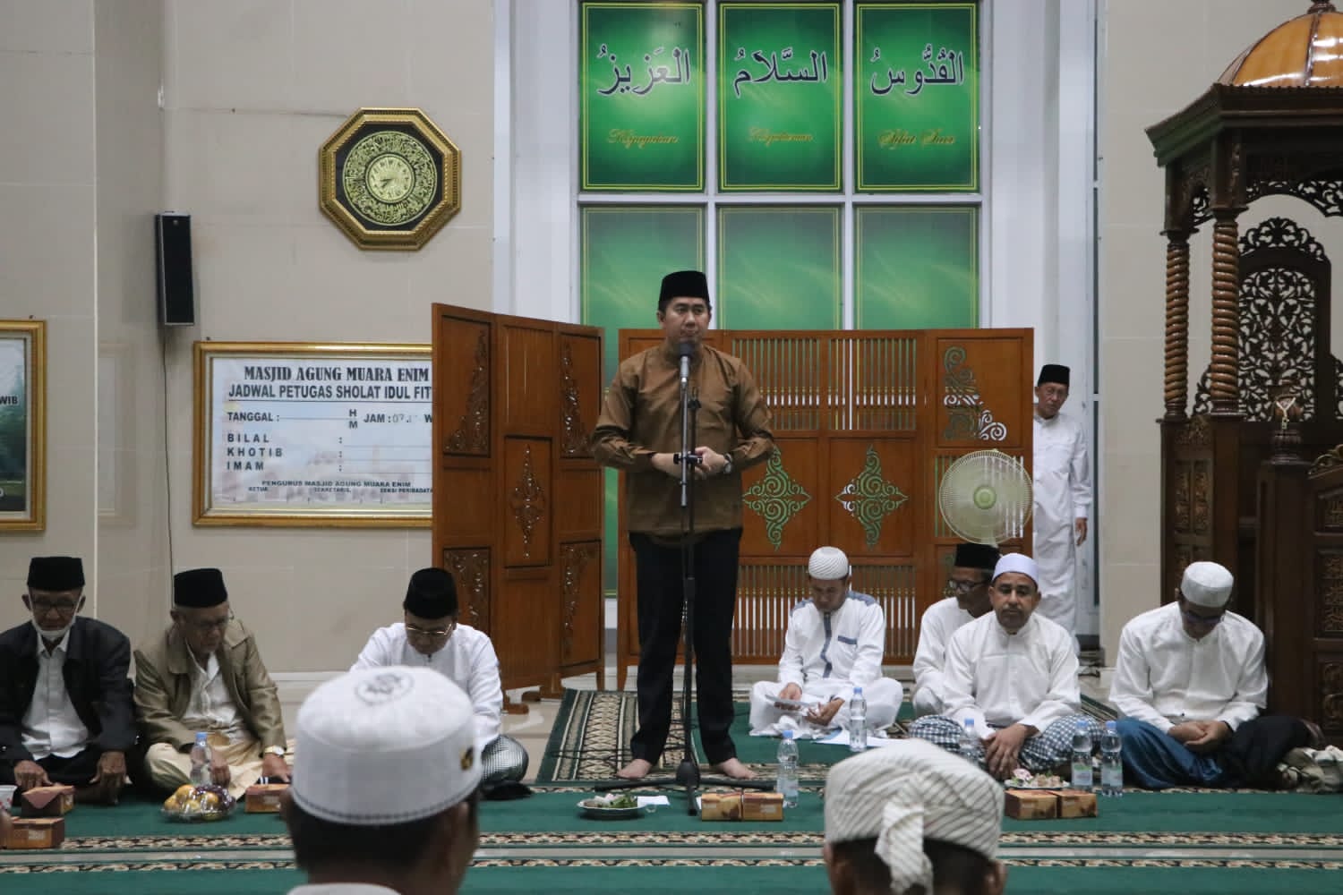 Muara Enim ,The8news.com | Rangkaian kegiatan Haul Syekh Jalaluddin Rahmatullah PUYANG KARANG ENIM dan memperingati Isra Mi’raj Nabi Muhammad SAW 1444 H di hadiri langsung Plt Bupati Muara Enim H. AHMAD USMARWI KAFFAH SH. LL.M., L.LM, PhD, Pj. Sekda Muara Enim H. Riswandar.SH. MH, Forkopimda, Kabag,Ketua TP. PKK Muara Enim, Ketua Dharma Wanita Persatuan Muara Enim, Ketua Yayasan Masjid Agung Muara Enim dr. H. Yan Riyadi. Mars beserta Pengurus, Tokoh Masyarakat, Tokoh Agama, Para Habib, Majlis Taklim, Pondok Pesantren, Ormas, Tokoh Pemuda, Jamaah Masjid Agung, Warga Kemayoran dan Masyarakat diseputaran Muara Enim Sabtu (25/02/2023),yang bertempat di Masjid Agung Kabupaten Muara Enim.