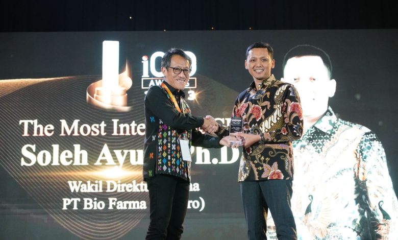 Jakarta ,The8news.com | Wakil Direktur Utama Bio Farma Soleh Ayubi dinobatkan sebagai The Most Intelligence CIO dalam ajang iCIO Awards 2023. Soleh Ayubi dipandang sukses menjadi inovator dalam mendorong implementasi dan pemanfaatan teknologi digital di Bio Farma.