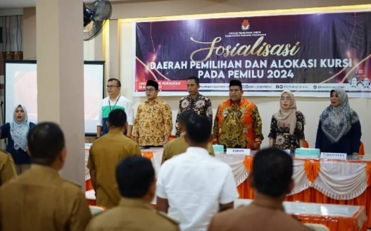 Jelang pemilihan umum tahun 2024, Komisi Pemilihan Umum (KPU) Kabupaten Padang Pariaman menggelar sosialisasi Daerah Pemilihan dan Alokasi Kursi Anggota DPR, DPRD Provinsi, DPRD Kabupaten/Kota dalam pemilu tahun 2024 bertempat di RM Joyo Makmur, Pariaman, Selasa (29/03).