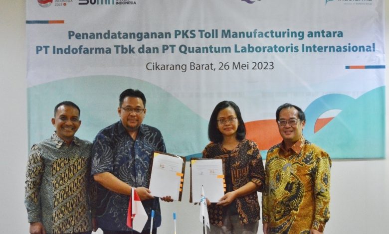 PT Indofarma TBK (INAF), anak usaha Biofarma Group senantiasa meningkatkan potensi bisnis dengan menandatangani Perjanjian Kerja Sama Toll Manufacturing antara PT Indofarma Tbk dengan PT Quantum Laboratoris Internasional di Kantor Pusat Indofarma Cikarang Barat pada 26 Mei 2023. Kerjasama ini sebagai salah satu bentuk B2B partnership khususnya dalam memanfaatkan kapasitas dan kapabilitas masing-masing perusahaan agar berkembang lebih baik.