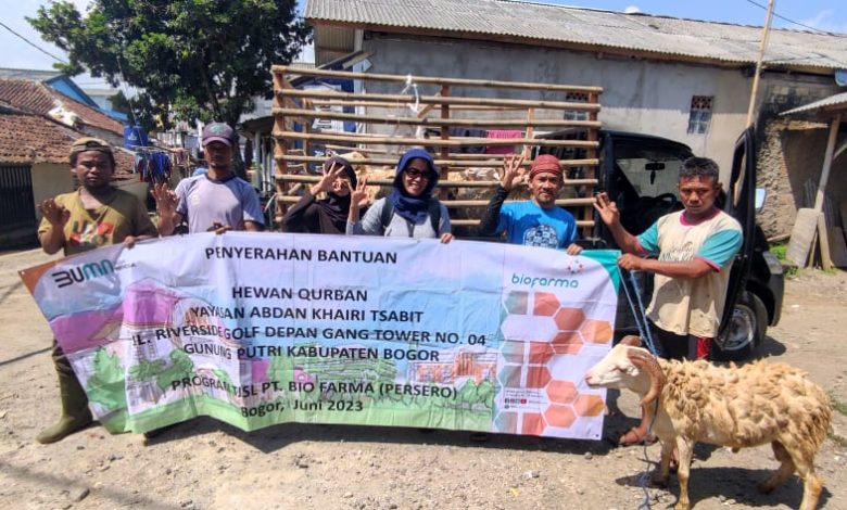 The8news.com Bandung, 1 Juli 2023 – Biofarma Group dengan Bio Farma sebagai induk, serta anak usaha Kimia Farma menyalurkan total sebanyak 103 hewan kurban yang terdiri dari 10 ekor kambing, 50 ekor domba dan 43 sapi pada Hari Raya Idul Adha 1444 Hijriah tahun ini. Bio Farma menggelar program Tebar Kurban Bio Farma, sementara Kimia Farma (KAEF) dengan program Qurban Sehat Kimia Farma yang merupakan bentuk tanggung jawab sosial lingkungan perusahaan hasil kolaborasi dengan anak usahanya yaitu PT Kimia Farma Apotek, PT Kimia Farma Trading and Distribution, PT Sinkona Indonesia Lesatari dan PT Phapros Tbk.