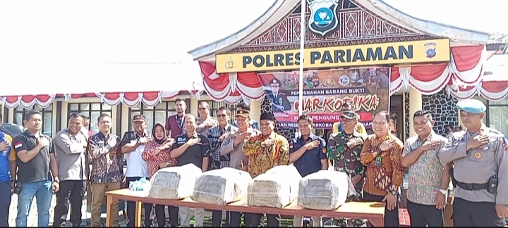 pada hari senin tanggal 14Juli 2023 dilakukan pemusnahan barang bukti di halaman mako polres pariaman yang mana penyidikan memasukkan sebanyak 76 paket besar ganja kering dengan berat bersih 63.132,78