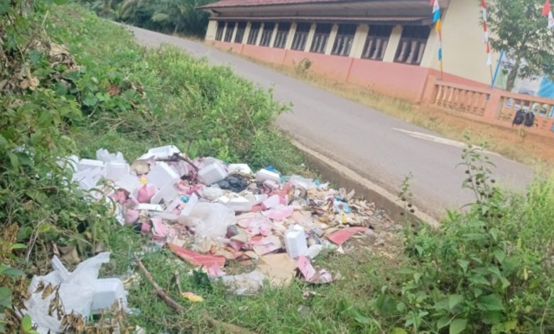 Tumpukan Sampah Dipinggir Jalan Depan SDN Talang Duku Bikin Miris.