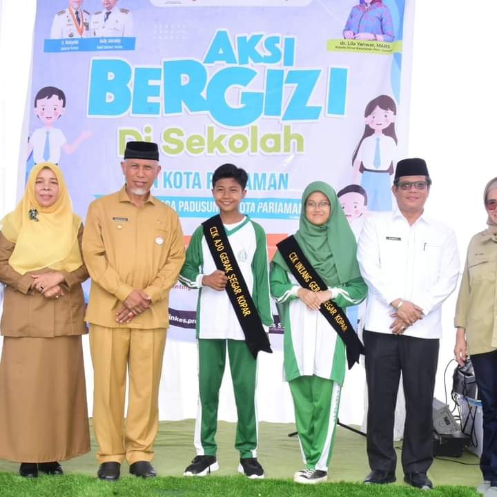 Pariaman-Gubernur Sumatera Barat Mahyeldi Kunjungi MAN 1 Kota Pariaman dalam rangka Aksi bergizi di sekolah , Mahyeldi di Dampingi Oleh kadis kesehatan provinsi sumatera barat dr Lila yanuar.MARS.