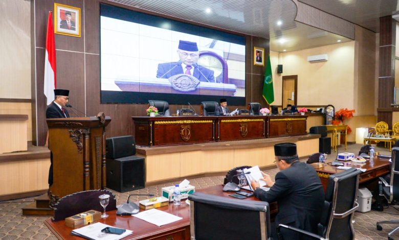 Pengesahan Tiga Raperda ini dibahas dalam Rapat Paripurna Masa Persidangan I Rapat ke-31 yang berlangsung di Ruang Rapat Paripurna DPRD Muba, Senin (27/11/2023). Rapat paripurna dipimpin langsung oleh Ketua DPRD Muba H Sugondo SH dan dihadiri langsung oleh Pj Bupati Muba H Apriyadi Mahmud, Pj Sekda Muba Musni Wijaya SSos MSi, Anggota DPRD Muba, Forkopimda dan Perangkat Daerah di lingkungan Pemkab Muba.