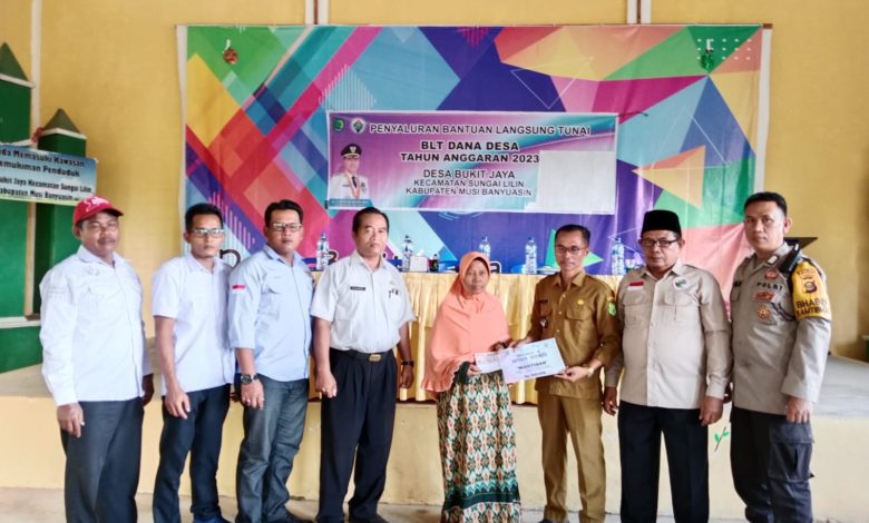 MUBA, The8news.com – Pemerintah Desa Bukit Jaya Kecamatan Sungai Lilin Kabupaten Musi Banyuasin (Muba) salurkan Bantuan Lansung Tunai Dana Desa (BLT-DD) tahap akhir tahun 2023 kepada 23 orang Keluarga Penerima Manfaat (KPM), ilin, Babinsa dan Babinkamtibmas bertempat di kantor Desa Bukit Jaya, Rabu (06/12/23).