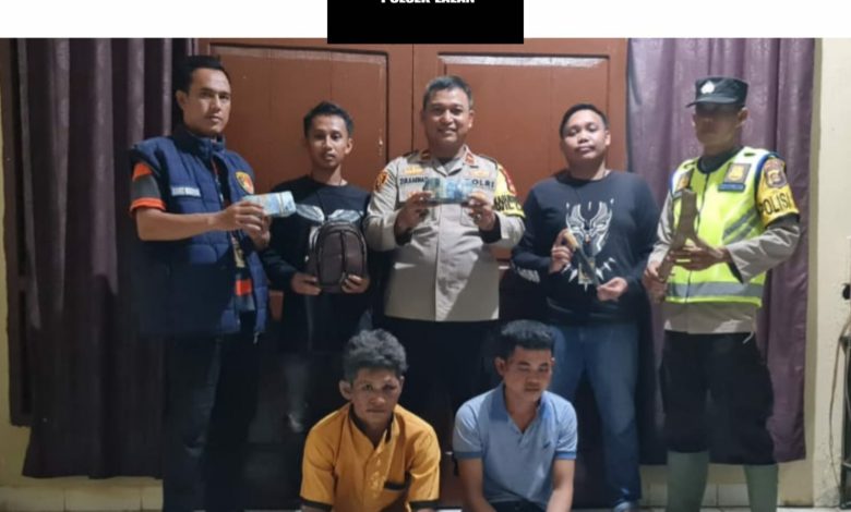 “Dari tangan kedua tersangka, petugas berhasil mengamankan sejumlah barang bukti, yakni satu unit sepeda motor Honda Beat, satu potong kayu bulat dengan panjang kurang lebih 40 Cm, satu buah senjata tajam jenis pisau, dan uang tunai sebesar Rp.50.000.000 (lima pulu juta rupiah), satu buah tas selempang wsrna coklat merk sport, satu buah sebo warna coklat dan satu buah plastik kantong berwarna hitam,” ujar Kapolsek Ipda Zulkarnain.