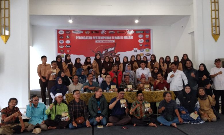 PALEMBANG, The8news.com – Hari ketiga rangkaian peringatan Pertempuran 5 Hari 5 Malam di kota Palembang yang di pusatkan di Gedung Kesenian Palembang , Rabu (3/1) di warnai dengan bedah Buku “Sejarah Palembang Dalam Pantun” karya Amanda Maida Lamhati (Fir Azwar Spd MM ) dengan narasumber Fir Azwar , budayawan kota Palembang Vebri Al Lintani dan sejarawan kota Palembang Kemas Ari Panji.