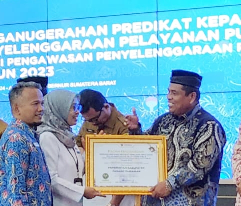 “Alhamdulillah Pemerintah Kabupaten Padang Pariaman di bawah kepemimpinan Suhatri Bur – Rahmang memiliki komitmen yang kuat dalam kepatuhan pelaksanaan tugas pelayanan publik. Berkat komitmen tersebut, kita diganjar penghargaan oleh Ombudsman dengan kategori kabupaten pada Penganugerahan Prediket Kepatuhan Penyelenggaraan Pelayanan Publik (Opini Pengawasan Penyelenggaraan Pelayanan Publik) tahun 2023,” ungkapnya.