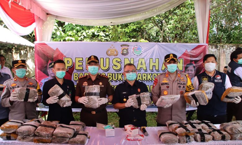 OKUT, The8news.com – Polres OKUT Polda Sumsel melakukan pemusnahan Barang Bukti 35,7 KG Narkotika jenis Ganja.