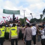 Ribuan massa yang mengatas namakan Aliansi pro Demokrasi Menggugat, saat melakukan unjuk rasa diluar gedung KPU kabupaten Musi Banyuasin, di kawal ketat pihak keamanan.