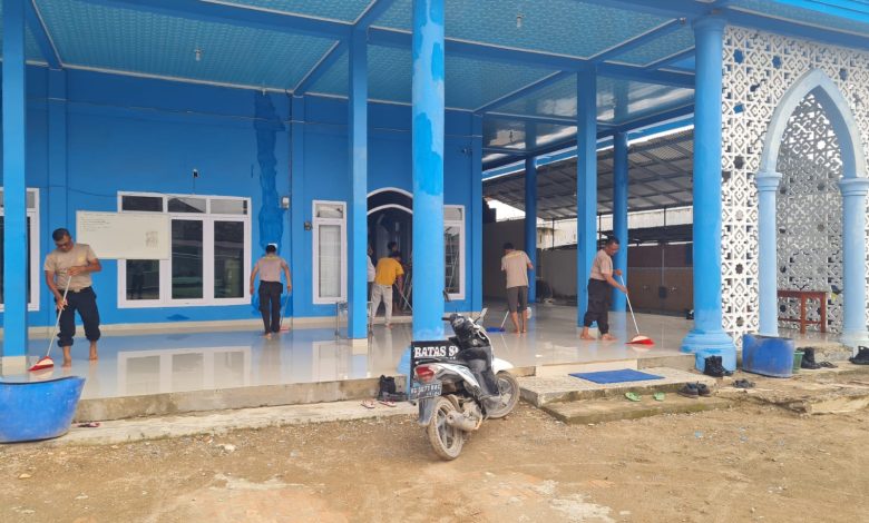 Menyongsong Hari Bhayangkara ke-78, Jajaran Polres Muba Bakti Sosial Bersihkan Tempat Ibadah