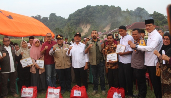 Kepala BNPB RI Letjend Suharyanto menyerahkan bantuan penanggulangan bencana sebesar 250 juta rupiah serta logistik Kebencanaan untuk Kabupaten Padang Pariaman.