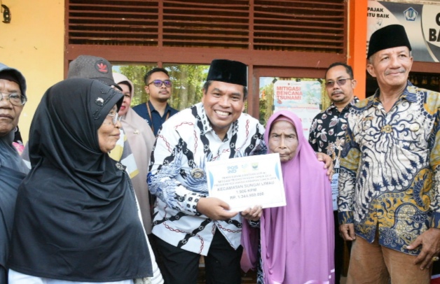 Sungai Limau, 15/2/24. Bupati Padang Pariaman Suhatri Bur lounching penyerahan Bantuan Sosial Tunai Mitigasi Resiko Pangan Tahap I tahun 2024 di Padang Pariaman, lokasi Lounching kali ini dilaksanakan di Kecamatan Sungai Limau Kabupaten Padang Pariaman Hari ini, Kamis, 15/2.
