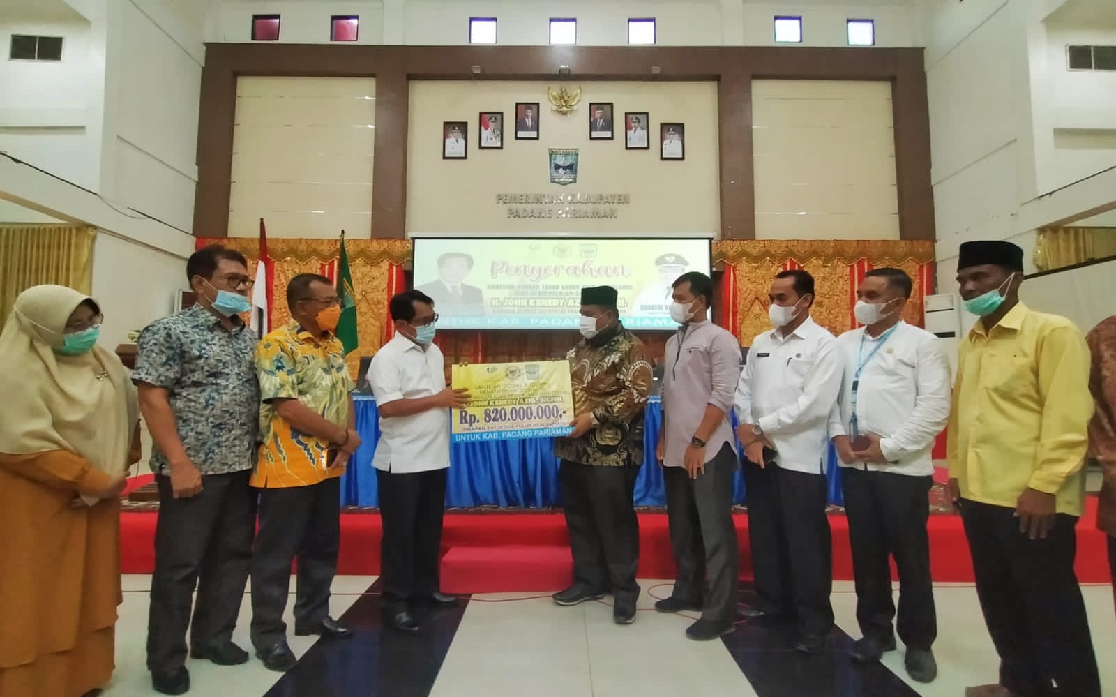 Bantuan senilai Rp. 820.000.000,- tersebut, diserahkan langsung oleh anggota Komisi VIII DPR RI, Jon Kenedi Azis dari Fraksi Partai Golkar kepada Bupati Padang Pariaman dan selanjutnya diserahkan kepada perwakilan penerima, Suardi yang beralamat di Nagari Sungai Buluah Barat Kecamatan Batang Anai, Kabupaten Padang Pariaman, Provinsi Sumatra Barat.