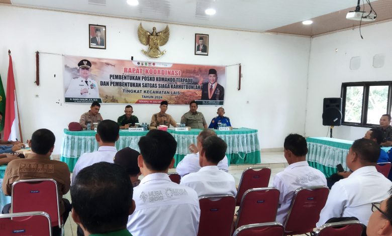 Dalam kesempatan itu, Camat Lais Marsopi SKM MM menjelaskan rapat koordinasi ini dalam rangka mengaktifkan kembali posko kahutlah yang sudah ada dan membentuk satgas penanggulangan kebakaran hutan dan lahan.