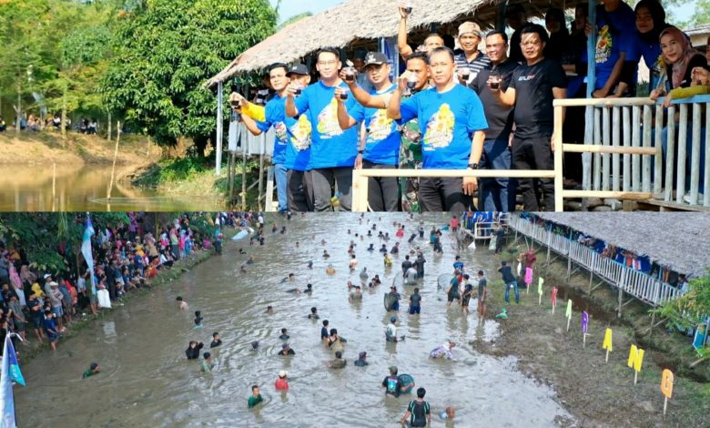 Meriah, Ribuan Masyarakat Muba Ngopi Bareng dan Bekarang Cari Ikan di Embung Senja