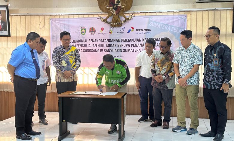 PALEMBANG, The8news.com – Pertamina Hulu Energi Jambi Merang meneken perjanjian kerjasama dengan Lembaga Pengelola Hutan Desa (LPHD) Sungsang IV untuk menanam 1000 mangrove, Jumat (19/7) lalu di kantor Dinas Kehutanan Sumatera Selatan, Palembang.