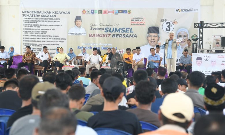 MUBA, The8news.com – Kunjungi masyarakat di Kecamatan Babat Toman, Kabupaten Musi Banyuasin (Muba), Rabu (16/10/2024). Calon Gubernur Sumatera Selatan (Sumsel) , H. Mawardi Yahya, dan pasangannya calon Wakil Gubernur Sumsel,Hj RA Anita Noeringhati, memperkenalkan program-program unggulan mereka yang di sambut gemuruh masyarakat yang hadir.